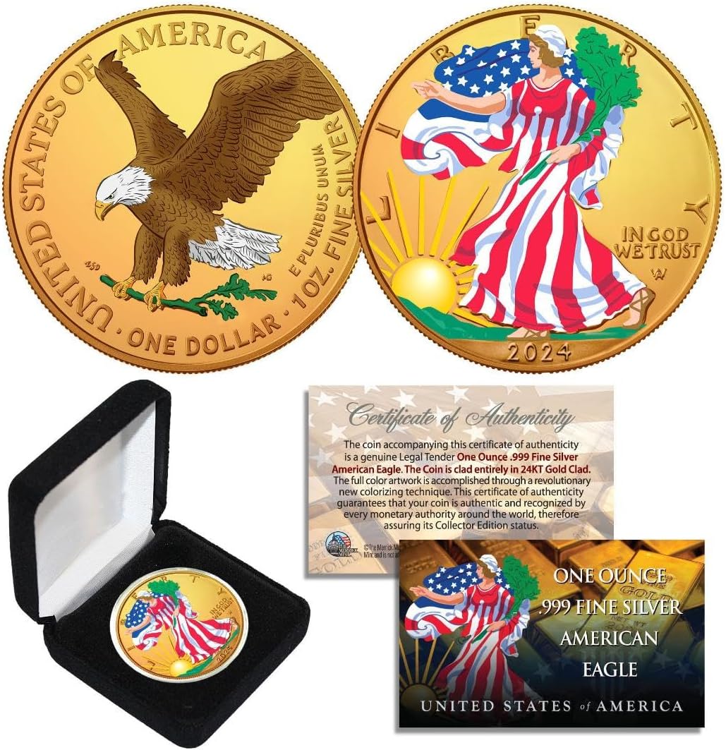 Combo 24K Gold GildedColor 2022 American Silver Eagle 1 Oz .999 Coin wBox